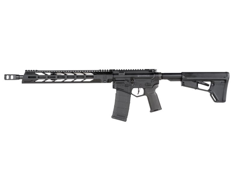 This DB15 rifle features a carbine-length, medium 4150 ChromeMoly barrel, mid-length gas system with pinned gas block, and a shot-peened Mil-Spec 8620 bolt carrier. It utilizes 7075-T6 aluminum receivers, 15″ M-Lok anti-rotation handguard, Magpul MOE-K2+ grip, and a Magpul ACS-L stock.