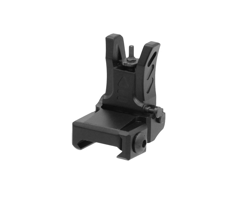 UTG MNT-755 Low Profile Flip-Up Front Sight AR-15 Aluminum/Steel Black Leapers Low Profile Flip-Up Front Sight is constructed of aluminum with a anodize black finish. It has a Posi-lock and a low profile 3mm locking bolt and mounting deck.